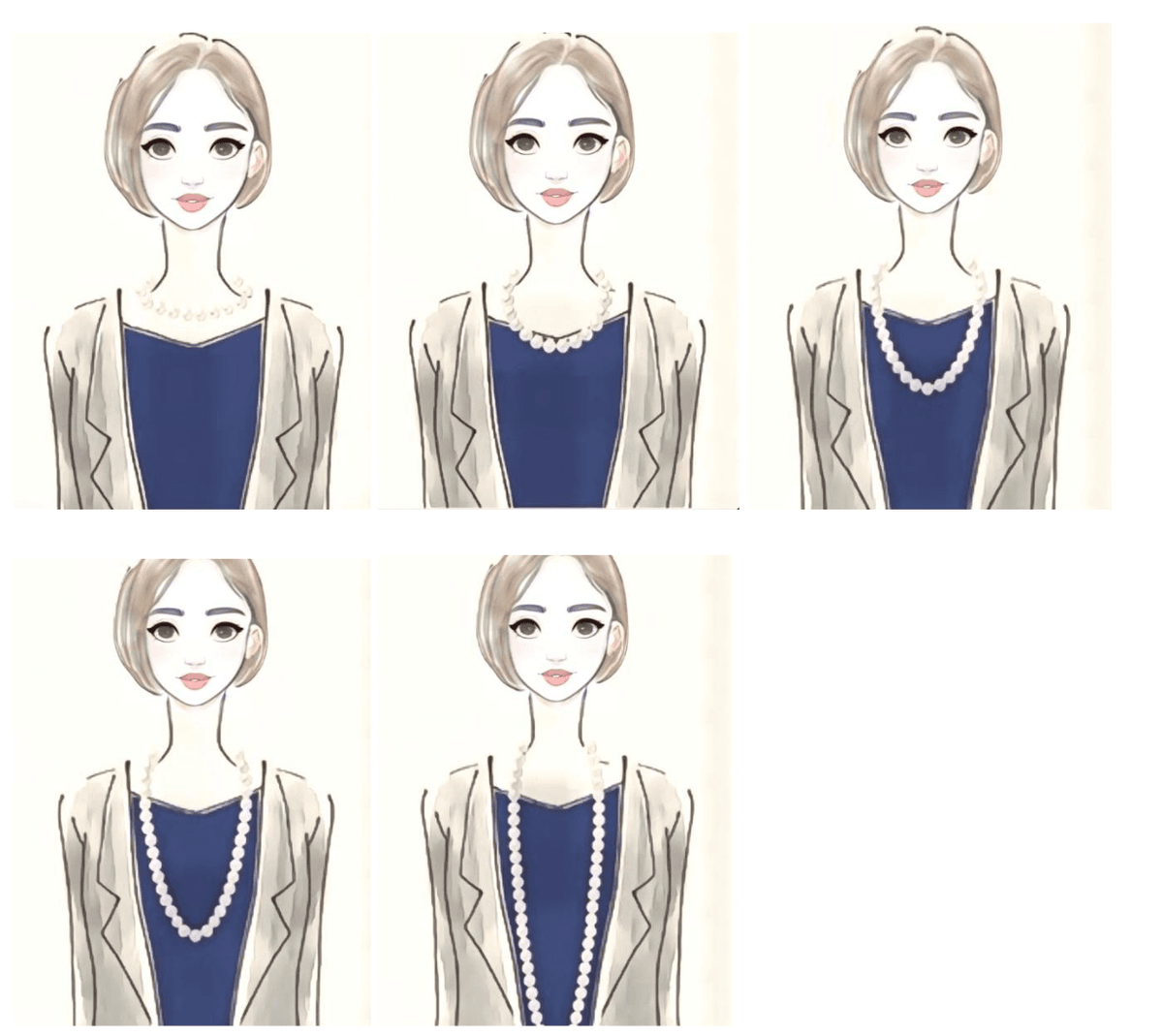 Цээжний дунд хэсэг хүртэл унжих ба давхарлан зүүх боломжтой. Баярын үдэшлэг болон гоёлын хувцастай хослуулахад хамгийн тохиромжтой.