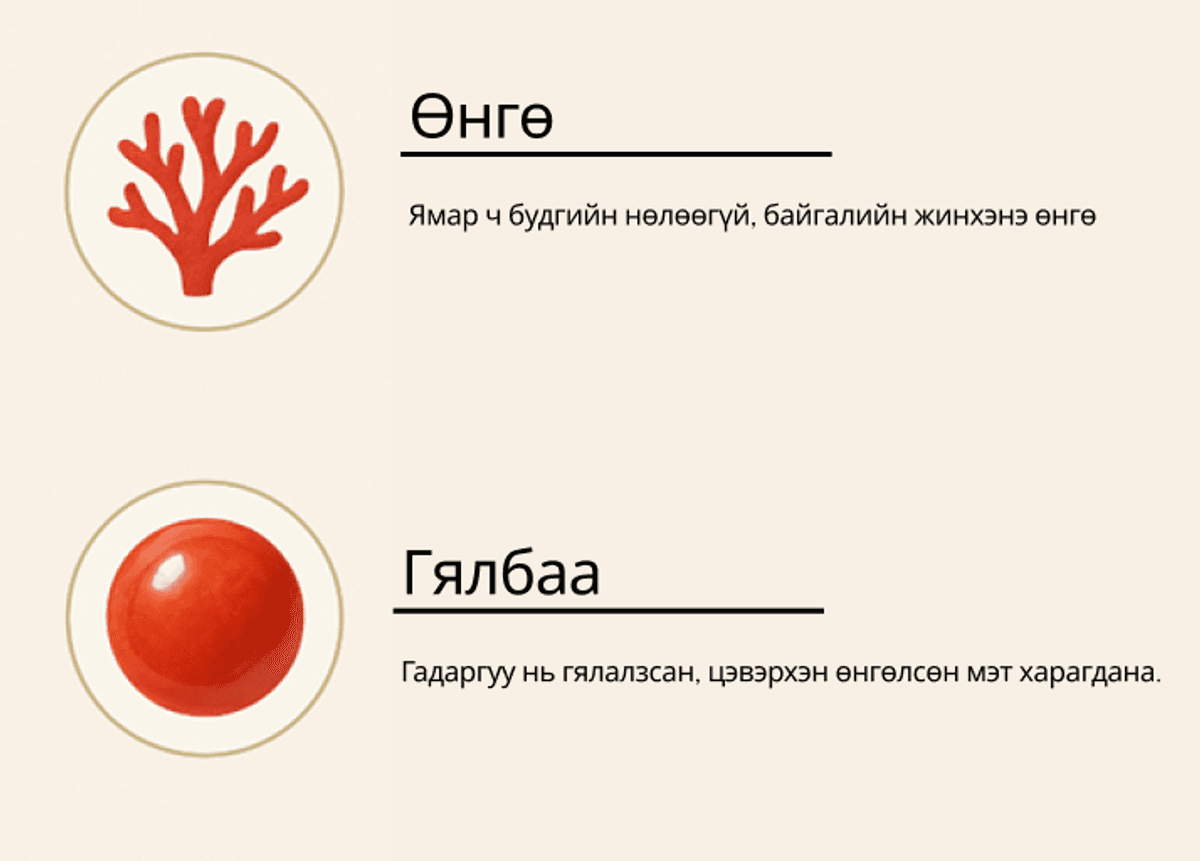 • Момо (桃珊瑚) – ягаавтар өнгөтэй, зөөлөн дулаан мэдрэмжтэй.